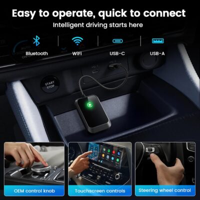 Wireless CarPlay Adapter for iPhone – Wired to Wireless CarPlay Converter, Stable & No-Lag, Dual USB-A/USB-C Ports, Compatible with iPhone 6+ & 2015+ Year Vehicles with OEM CarPlay