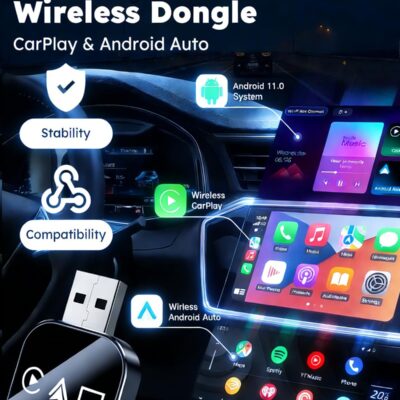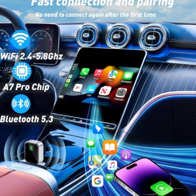 Wireless CarPlay Adapter– Android Auto Wireless Adapter, 5.8GHz Wi-Fi Plug & Play,Mini and Stable iOS 10+/Android 10+, Fast Auto-Connect for Cars 2016+ (1Pcs)