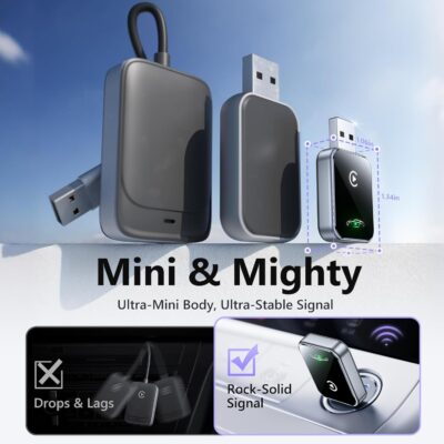 Wireless CarPlay Adapter for iPhone(2025 Upgraded),Mini Size & Plug – Play,Converts Wired to Wireless Apple CarPlay,No Delay Carplay Dongle for Apple iOS 10+/Android 11+ and Above