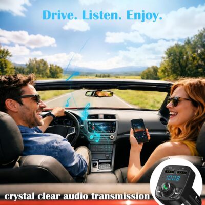 Handsfree Call Car Charger, Wireless Bluetooth 5.3 FM Transmitter Radio Receiver, MP3 Audio Music Adapter, Dual USB Ports, LED Show Voltage/FM Frequency, Compatible for iPhone Samsung Smartphones