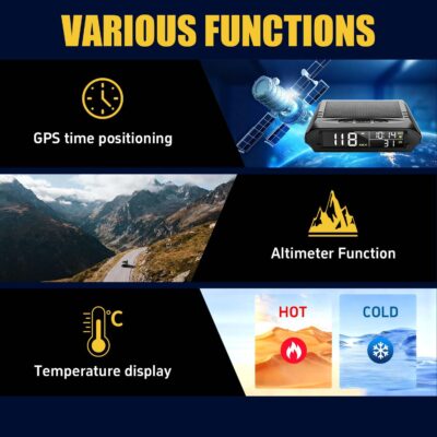 Wireless Heads Up Display for Cars Solar GPS Digital Speedometer with LCD Screen Overspeed Alarm KMH/MPH Time/Altitude/Temperature/Speed Display, Vibration Wake-Up, Auto-Brightness Adjustment