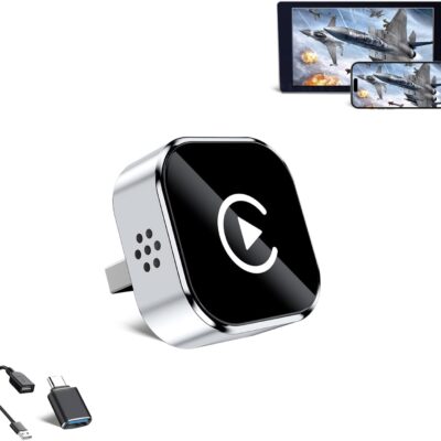 HYPAX Wireless CarPlay Adapter-4 in 1 Screen Mirror Link Car Adapter Android Auto Multi-User Seamless Connection Converts Wired to Wireless CarPlay Adapter – No Latency from iOS 10+ to Screen w/USB-C