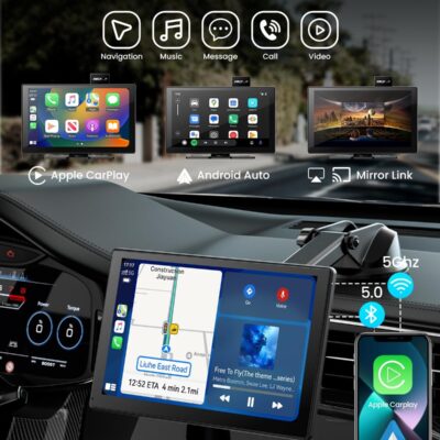 IK5 9″ Wireless Apple CarPlay & Android Auto Screen, Portable Car Stereo with 4K Dash Cam & 1080p Backup Camera, Add CarPlay to Any Vehicle, Touchscreen, Mirror Link