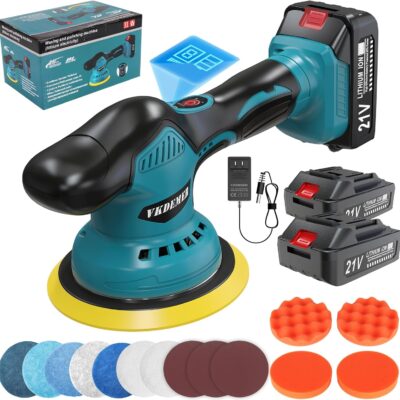Cordless Car Buffer Polisher, 6 In Mini Buffer Polisher Kit with 2 Pack 21V Rechargeable Batteries,8 Variable Speed 5500RPM Orbital Polisher for Car Boat Detailing, Polishing,Scratch Removing