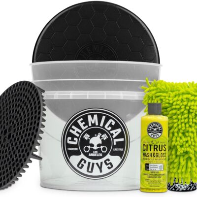Chemical Guys Ultimate Scratch-Free Detailing Car Wash Bucket Kit with Accessories, Car Detailing Kit With Dirt Trap, Wash Mitt, Lid, and 16 oz Soap, Safe For Trucks, SUVs, Motorcycles, RVs