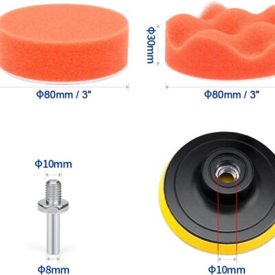 Petutu Car Foam Drill Polishing Pad Kit 22 PCS, 3 Inch Buffing Pads