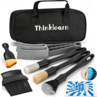 ThinkLearn Car Detailing Kit, Car Interior Detailing Kit, Including 7Pcs Auto Detailing Brushs and 200g Cleaning Gel (25% More Than 160g) Storage Bag, Car Accessories