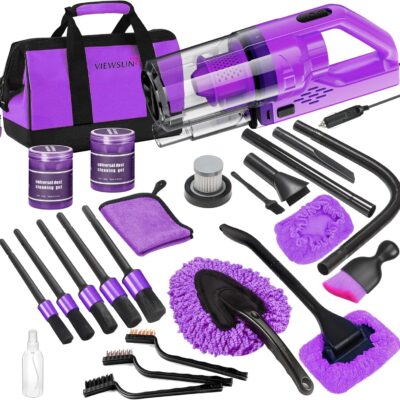 Viewsun 17PCS Car Cleaning Kit, Purple Car Interior Detailing Kit with High Power Handheld Vacuum, Detailing Brush Set, Windshield Cleaner, Cleaning Gel, Complete Auto Accessories for Women Gift