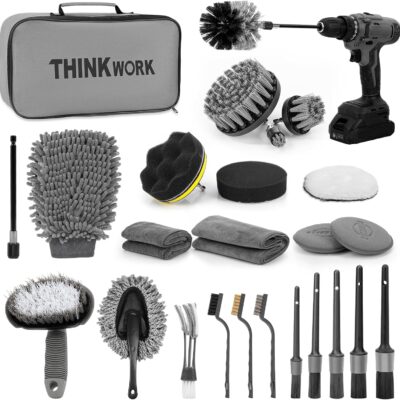 THINKWORK Car Detailing Kit, Car Detailing Brush Set, Car Cleaning Drill Brush Kit with Extension Pole, Professional Auto Detailing Supplies for Automobile Interior Exterior Wheels