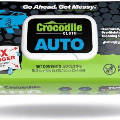 Crocodile Cloth Auto Cleaning Wipes – 100 XL (15″ x 10″) Disposable Wipes for Car Engine Degreasing, Body Detailing & Tire Cleaning – Cuts Grease, Oil, Adhesives on Hands, Tools, Parts & More