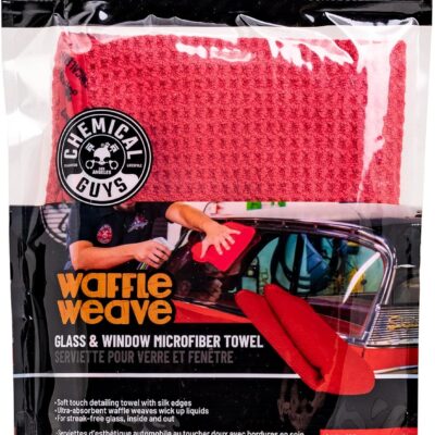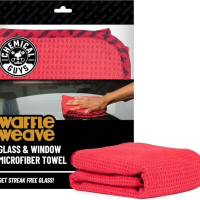Chemical Guys Waffle Weave Glass & Window Microfiber Towel – Red 24 x16 Inch Scratch-Free Detailing Cloth for Cars, Trucks, SUVs & Home, Streak-Free Cleaning for Glass, Mirrors & Windows