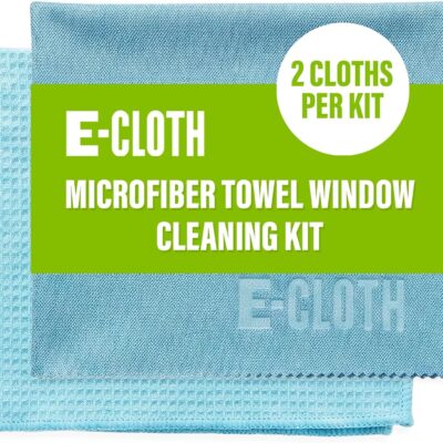 E-Cloth Microfiber Window Cleaning Cloth Kit – Glass Cleaning Cloth for Windows, Mirrors, Cars, Lenses, Eyeglasses, & More, Streak Free Clean, Machine Washable Reusable Towel – Alaskan Blue