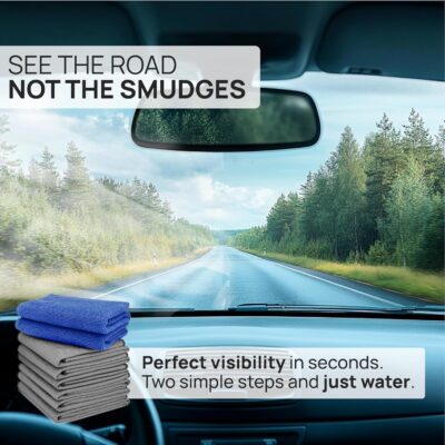 Claro Glass Towels Car Detailing 8-Pack – Streak Free Windshield Cleaner Cloth | Auto Glass Cleaner for Car Windows, Mirrors & Screens | Microfiber Car Cleaning Cloth for Detailing & Interior Use