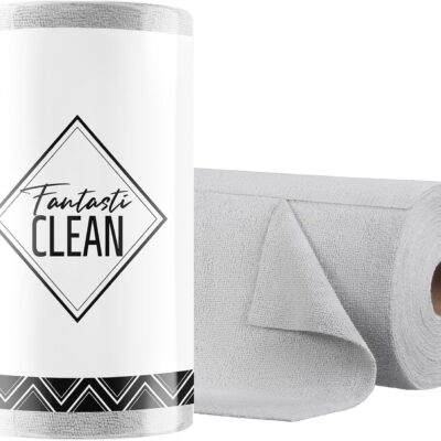 Fantasticlean Microfiber Cleaning Cloth Roll -75 Pack, Tear Away Microfiber Towels, 12″ x 12″, Reusable, Washable, Scratch Free, Ultra Absorbent Dishcloth for All-Around Cleaning Supplies (Grey)