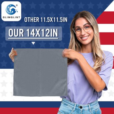GLIMGLINT Grey Microfiber Cleaning Cloth,12PK Reusable Cleaning Rags, Highly Absorbent Shop Rags Bulk, All-Purpose Car Cleaning Towels for TV Screen, Kitchen, Bathroom, Restaurant Garage, 14″X12″