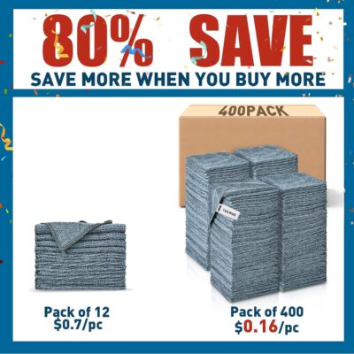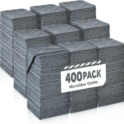 Gray Microfiber Cleaning Cloths Bulk Pack-400 Pack, Microfiber Towels Bulk, Towels for Cars, Cleaning Rags Gray (12×12 inches)