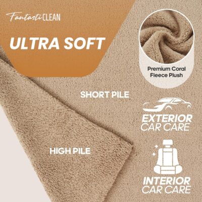 Fantasticlean Microfiber Towels for Cars, Tear Away Car Detailing Cloth Roll, RV Boat Drying Polishing, Edgeless Plush, Coral Fleece, Ultra Absorbent, Scratch-Free, 14″ x 14″, 20 Pack (Tan)