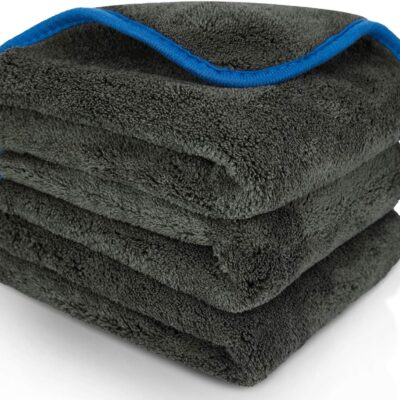 Large Car Drying Towel, 1300 GSM Professional Car Towel with Double Twisted Loop,Super Absorbent Large Microfiber Drying Towels for Cars, Trucks, SUVs – 20″x26″, Gray