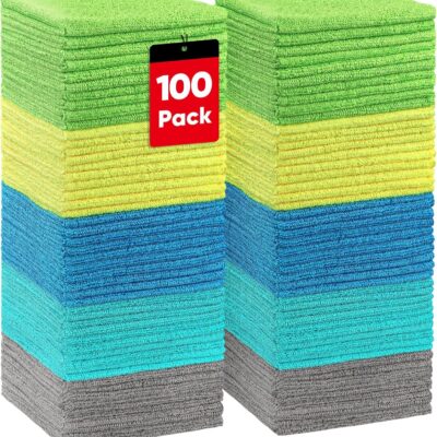 HOMEXCEL Microfiber Cleaning Cloths, 100 Pack Microfiber Towels for Cars, Lint & Scratch-Free Bulk Cleaning Rags for House, Kitchen, Car and Shop, Multicolor Absorbent Cleaning Towels 11.5 x 11.5 inch