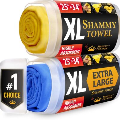 Premium XL Shammy Towel for Car – 2pk (34”x25”) – Super Absorbent Chamois Cloth – Spots & Scratch-Free – Reusable Car Drying Towels