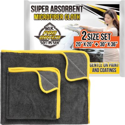 MJJC Pro Dryer Plush Silk Microfiber Drying Towel (2 Size Set (20” x 20”) + (30” x 36”)) Cars,Trucks, SUVs, RVs, Home
