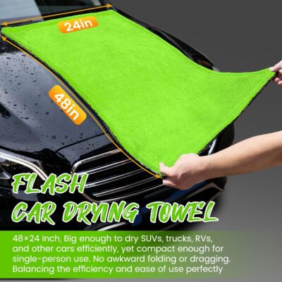 PUGPIU Microfiber Car Drying Towel Extra Large Super Absorbent 48″X24″, 1400 GSM Flash Detail Car Wash Drying Towel Edgeless with Two Sided Soft Twisted-Loop, No Water Spots Streaks for Cars (Green)