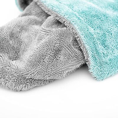 The Rag Company – The Liquid8r – Absorbent 70/30 Blend Microfiber Drying Towel for Cars, Trucks, SUVs, Safe for Detailing + Scratch Free, Twist Loop, 1100gsm, 20in x 24in, Aqua Blue/Grey