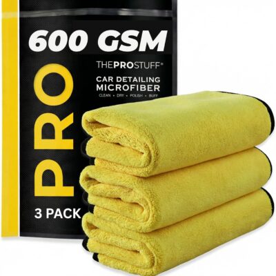 The Pro Stuff® Car Detailing Microfiber Towels – 600 GSM Thick Plush Auto Towels | Super Soft Dual-Sided for Cleaning, Washing, Buffing | Tagless, Scratch-Free, Lint Free Cloth (16″x16″) (3)
