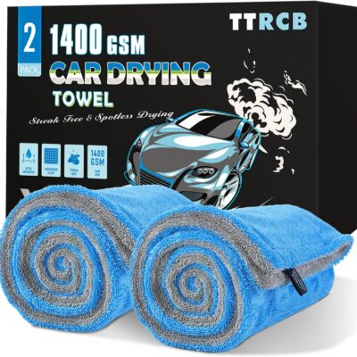 TTRCB 2 Pack Car Drying Towels, 48″ x 24″ Extra Large Microfiber Towels for Cars, 1400 GSM Ultra-Absorbent, Streak Free, Premium Double Twisted-Loop Drying Towels Car Detailing for SUV, RV, Truck
