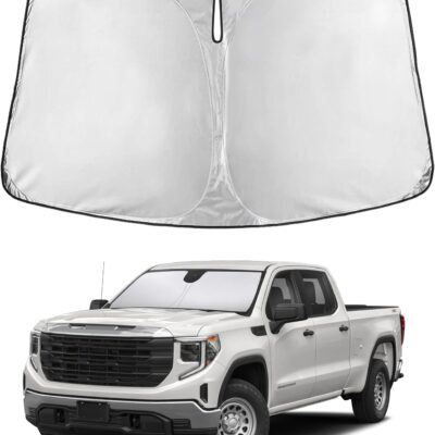 EcoNour Windshield Sunshade Compatible for Chevy Silverado/GMC Sierra 1500 2500 3500 2019-2024 2025 2026, Front Windshield Sun Shade Cover, UV Heat Protector, Car Sun Visor Interior Heat Protection