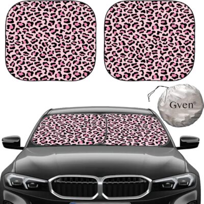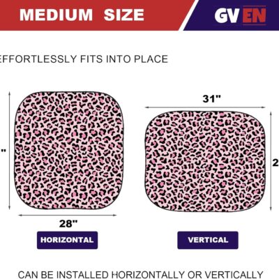 Gven Windshield Sun Shade 2pcs with Bonus Pink Car Sunshade for Front Window Shades 2025 Technology Reflect UV and Heat Sun Visor Automotive Accessories Interior Sun Protection (Pink Leopard, M)