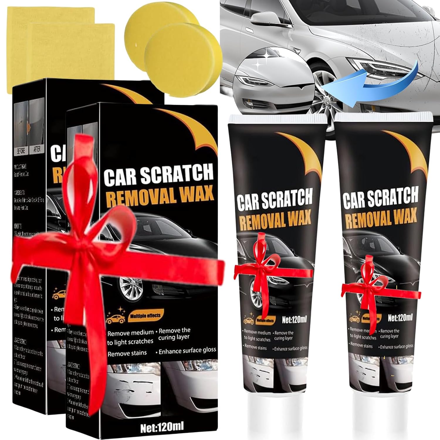 【New Upgrade car scratch remover】:Car scratch repair paste kit,this premium scratch remover kit is designed to effectively remove scratches from your car’s paint, giving it a refreshed and polished look.Car Scratch Repair Paste,Car Scratch Remover,2025 Car Scratch Repair Paste Polishing Wax,Premium Scratch Remover Kit with Wipe & Sponge for Vehicles for black car wax to hide scratches remover for vehicles scratch remover for vehicles