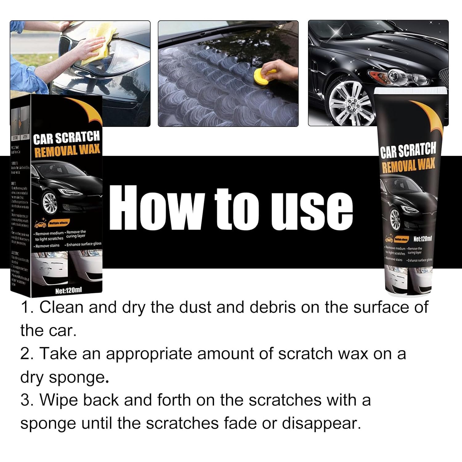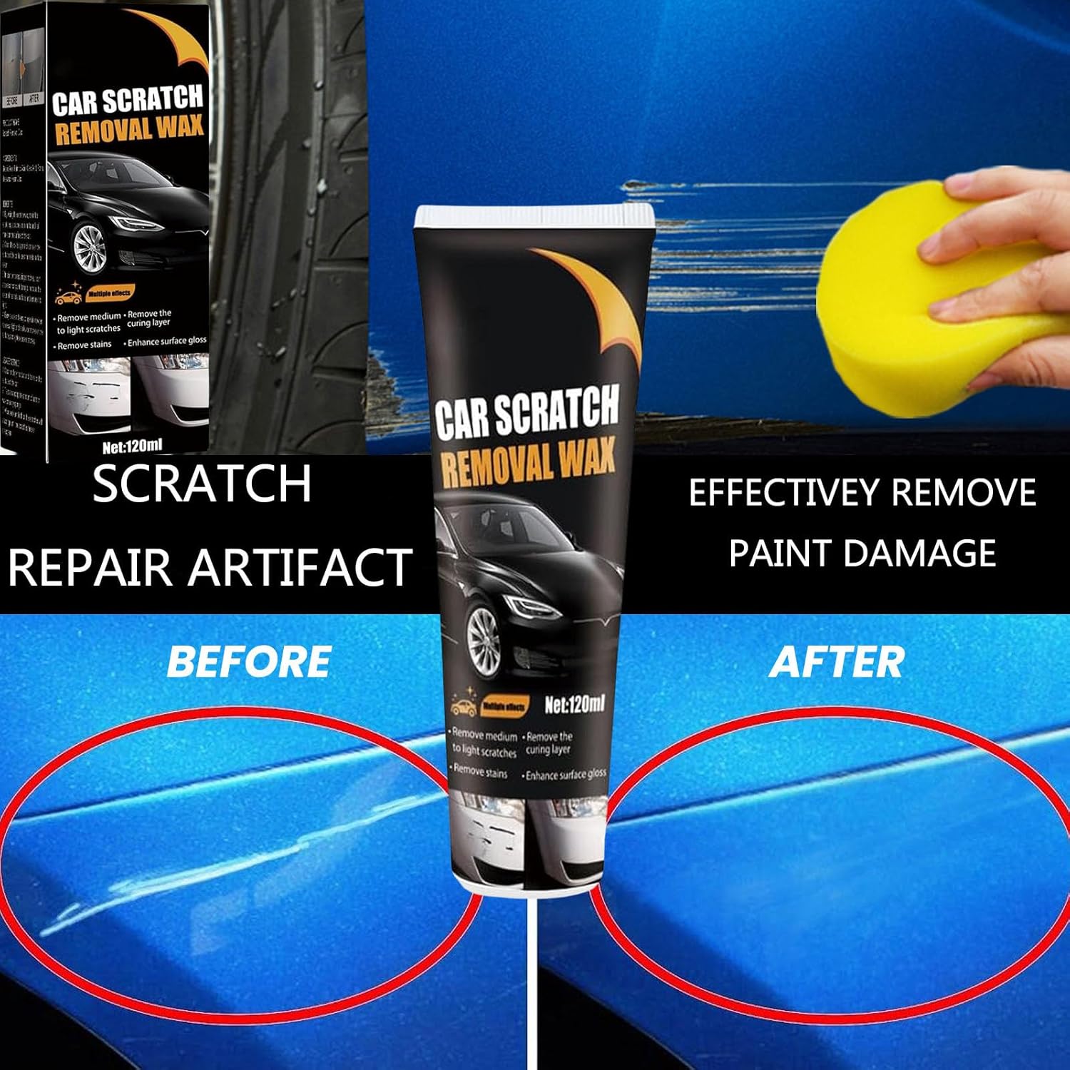 【Easy to Use】:scratch remover for vehicles,With the included wipe and sponge, this car scratch repair paste makes it convenient for you to buff out scratches on your vehicle. No need to spend money on expensive professional repairs.Car Scratch Repair Paste,buff scratches out of car.scratch remover for vehicles