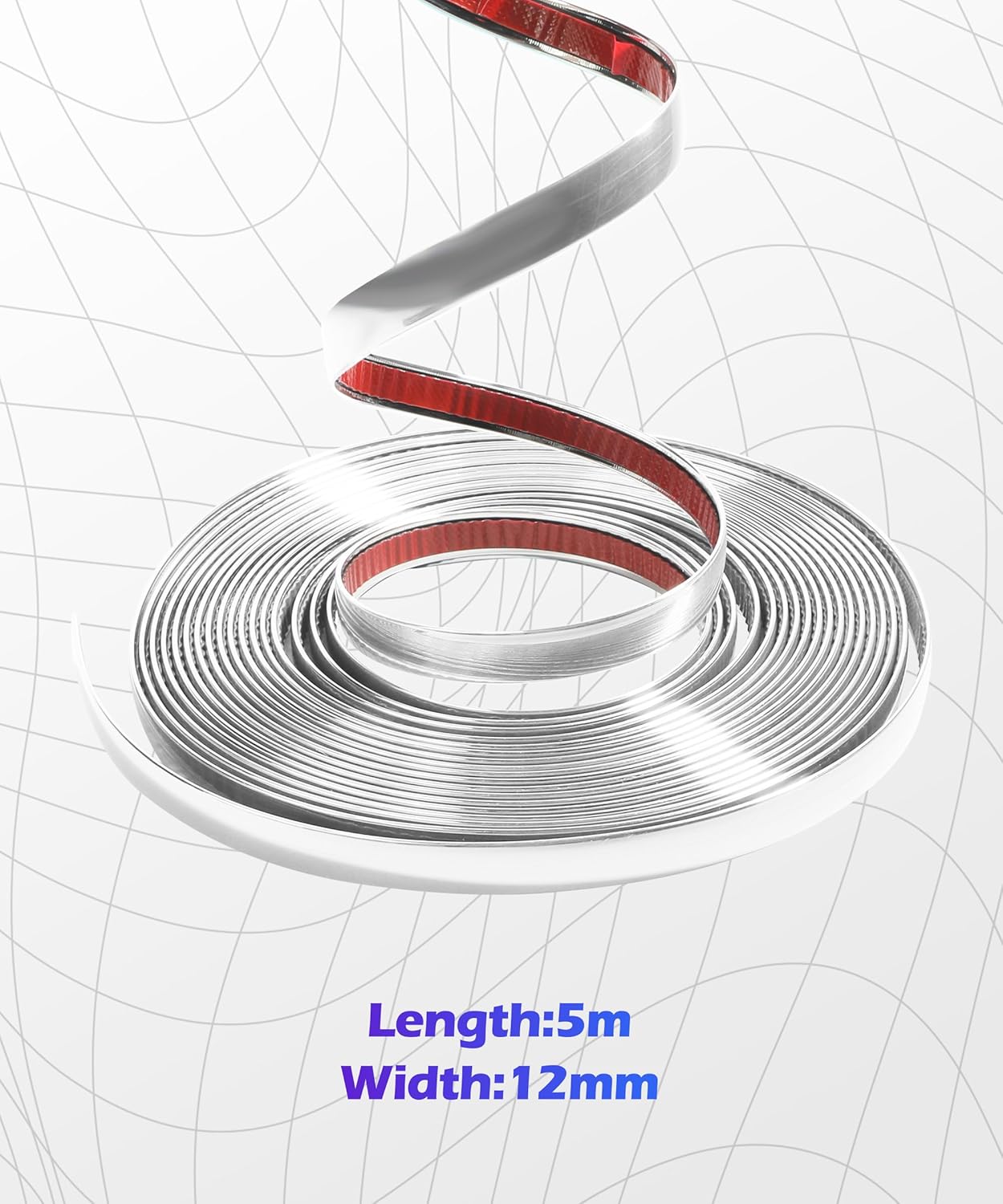 [High Quality]: Chrome tape made of durable soft PVC, chrome-plated surface and comes with self-adhesive tape, strong adhesion, good strength and corrosion resistance. Note that there is a layer of blue film, which needs to be torn off to see the original color.