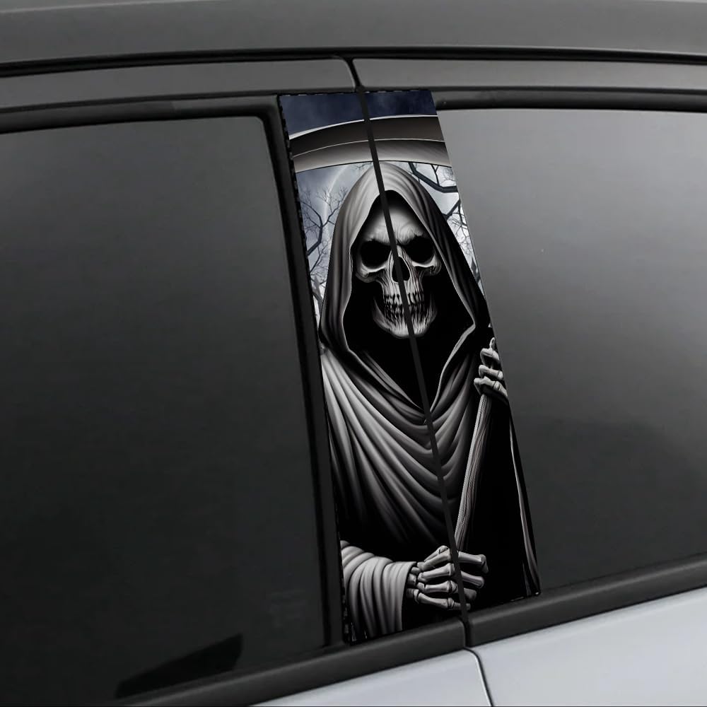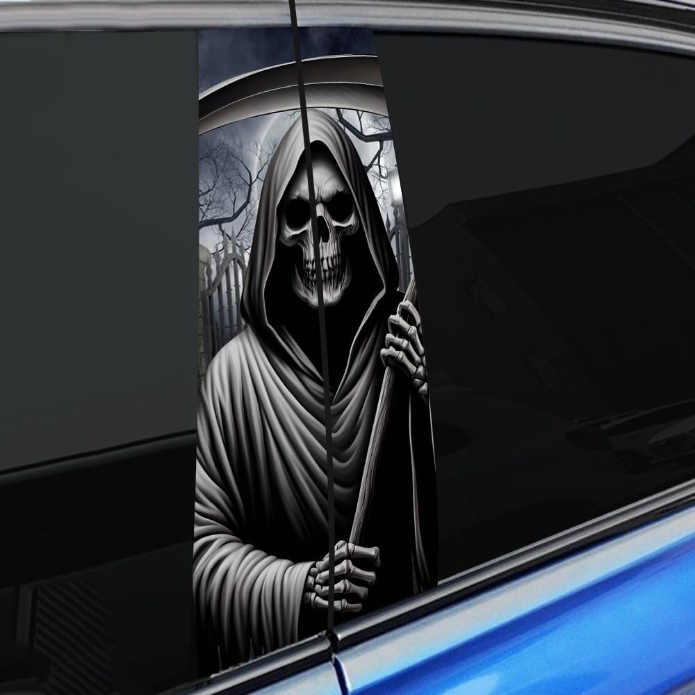 DESIGNLeniutor horror car center pillar sticker series! Original Design, inspired by classic horror characters including skull, death, horror movie characters and goth girl.MATERIALSize of 18.9″ x 11″, made of high-quality vinyl, UV-printed, with bright colors and clear partten, an awesome car decoration both in and out of your car.FEATURESPeel and stick, waterproof, fading-free, weather-resistant, non-toxic and durable. Easy to remove without residues. The side wouldn’t peel off.
