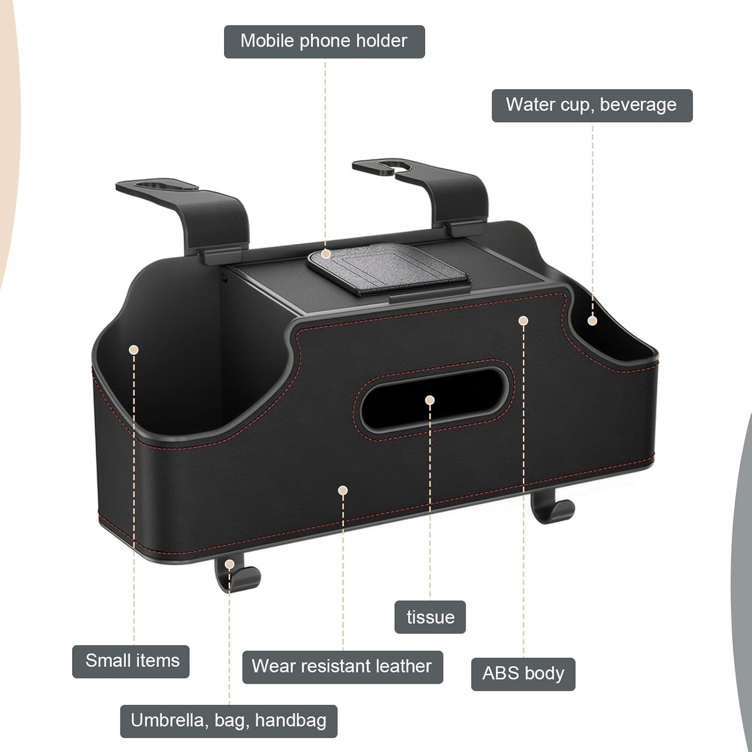Multiple Colors Available: The car organizer has two large cup holders and tissue boxes on each side. There is a mobile phone holder on the top and two hooks below. It fits most car seats, and the product contains black, beige, brown, you can choose the color that matches your car interior and personal taste.