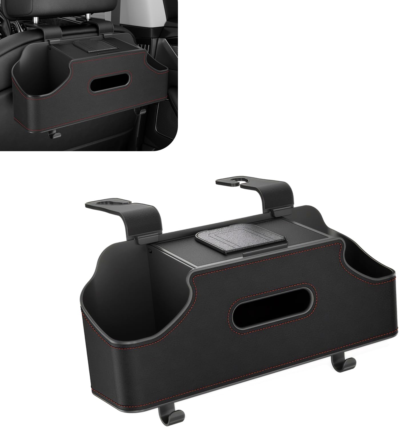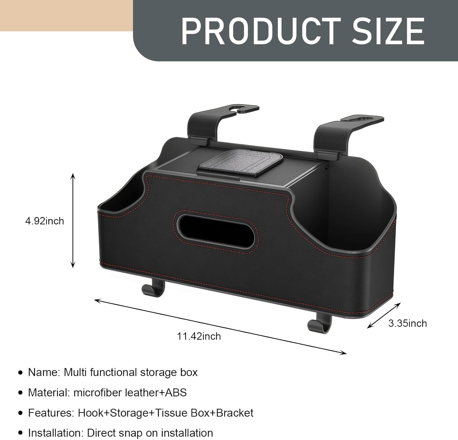 1 PC Car Seat Back Organizer, Car Back Seat Multi-Function Storage Box with 2 Drink Cup Holders, 11.42″ x 3.35″ Leather Tissue Organizer, Universal for Most Cars, Trucks, SUVs (Black)