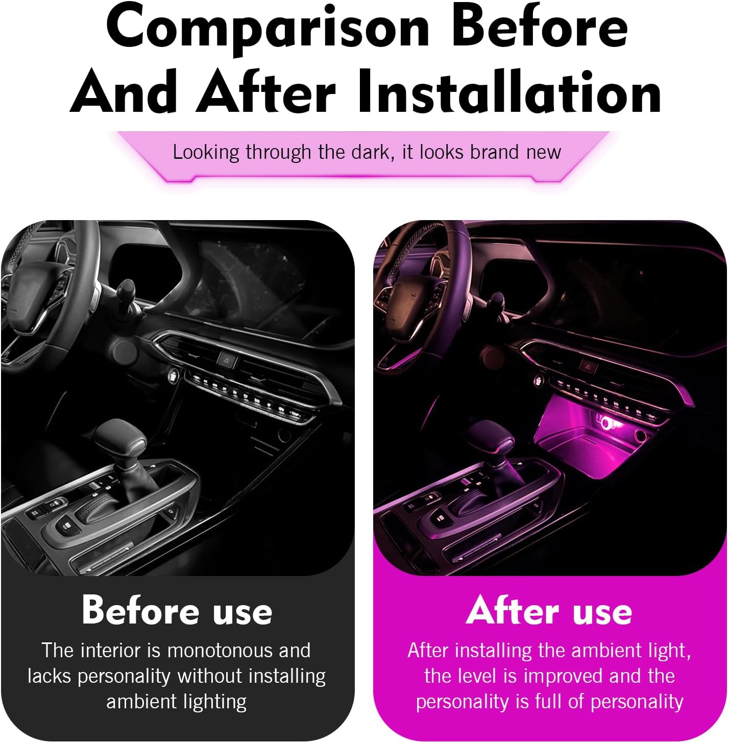 Soft Glow Eye-Friendly Lighting: Emits soft, non-glaring LED light that enhances the car interior’s aesthetic without affecting driving visibility. The gentle illumination is perfect for creating a relaxing atmosphere during long drives, and can also serve as a subtle night light for locating items in the car.