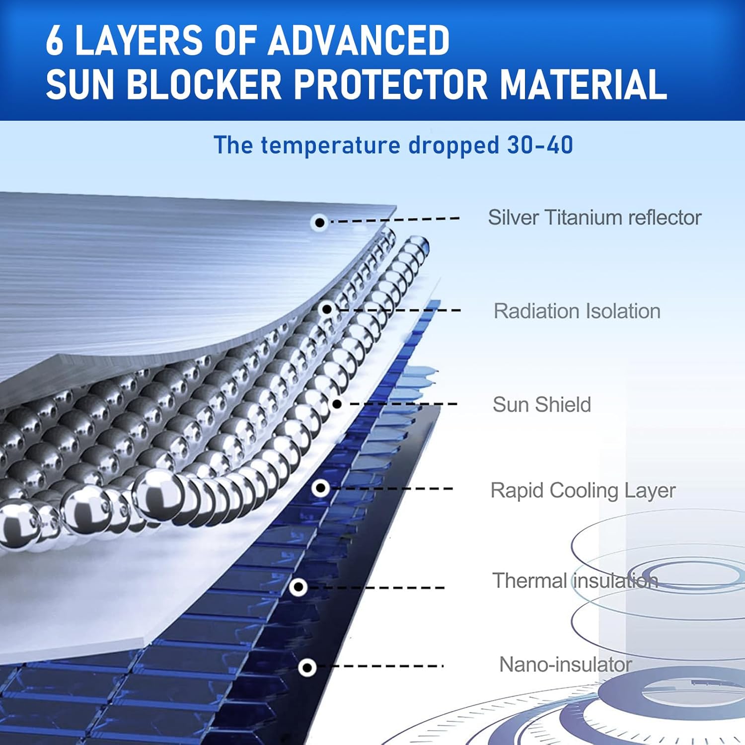 Durable Material: Windshield sunshade is made of high-quality composite titanium silver cloth that boasts great thermal insulation and a high refractive index. With composite polyester, providing tremendous protection block the sun’s heat.