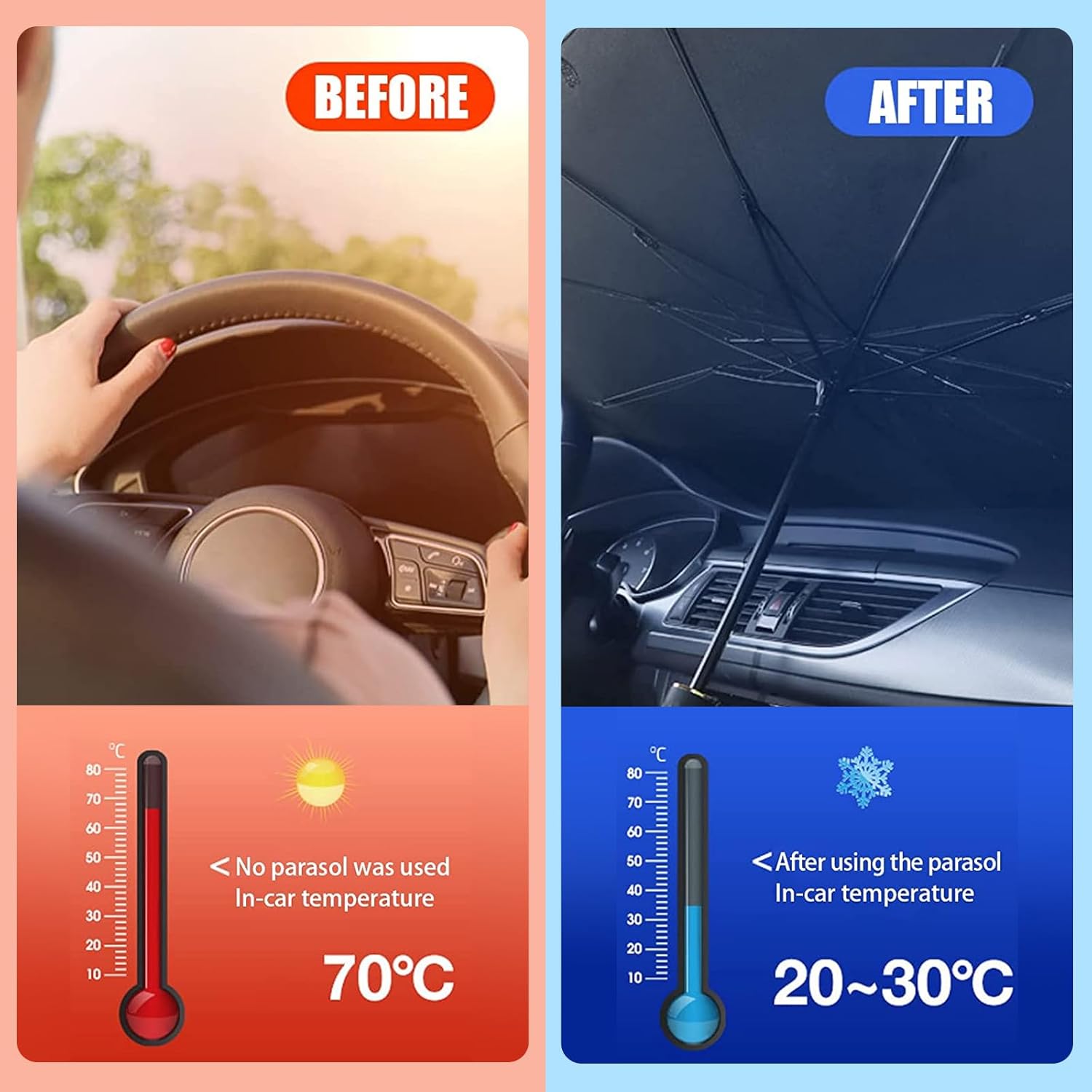 Strong Construction: Strong skeletons and the stable support ensure the durability of this car sunshade umbrella. It can be used for long time, avoid scratching and wearing the surface of automotive center stack