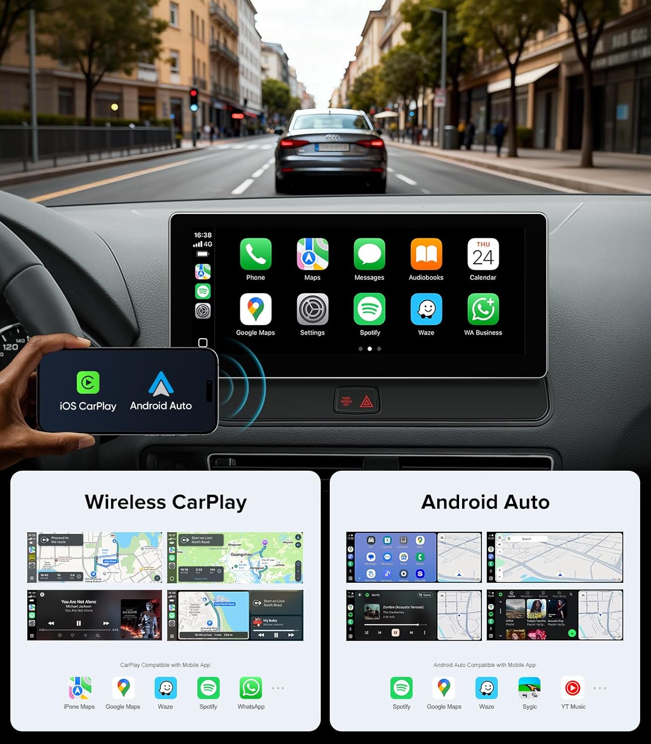 If you drive an older Audi, you know the original infotainment system now feels like a museum exhibit. Tiny screen, clunky menus, and navigation that probably still thinks Blockbuster Video is open.This replacement unit fixes that problem in a fairly dramatic way.The first thing you notice is the screen. It is a large 10-inch display that instantly makes the dashboard look like it jumped forward about a decade. Instead of squinting at a small factory screen, you now get a bright, wide touchscreen that is much easier to read while driving. Maps, music, and apps are all big enough to see without leaning halfway over the steering wheel.The big upgrade here is wireless phone integration. Once your phone connects, you can run navigation, music, calls, and messages through the screen just like you would in a modern car. It feels like the car suddenly learned how to live in the same century as your phone.What I particularly like is that the original car functions are still there. The factory system does not disappear, which means things like the original menus and vehicle settings are still accessible when you need them. It feels more like an upgrade layered onto the car rather than a replacement that breaks half the features.Installation is not exactly a five-minute project, but it is very manageable if you are comfortable removing trim panels and plugging in harnesses. Once installed, the fit looks very close to factory, which is always the goal with something like this.Sound quality is also solid. The system feeds into the original audio setup, so the speakers and amplifier you already have still do the work. Music, calls, and navigation prompts all come through cleanly.If you like your Audi but hate the prehistoric infotainment system, this is one of those upgrades that makes the car feel much newer every time you start it. Suddenly the dashboard stops feeling like 2009 and starts feeling a lot more like 2025.