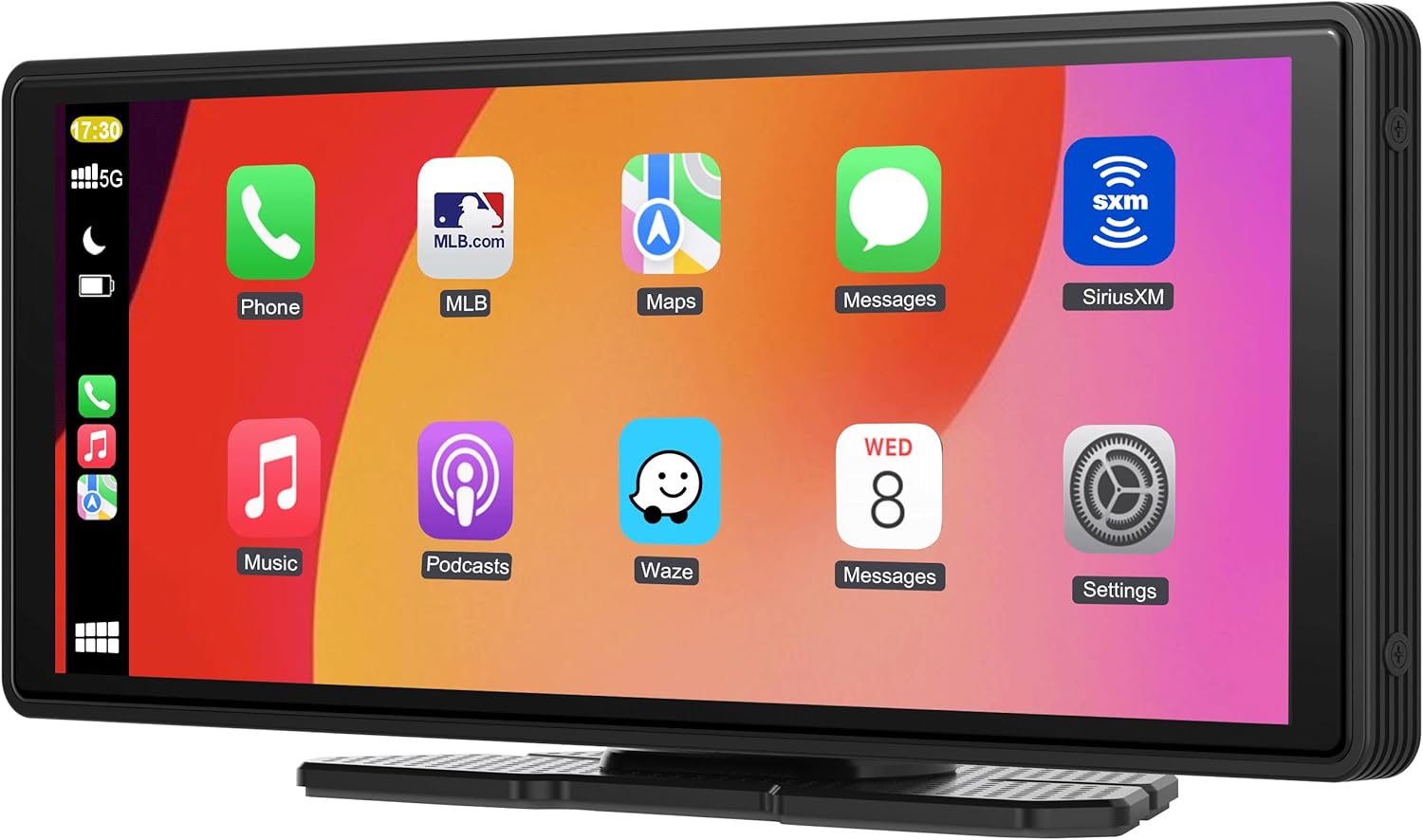 Stable Bluetooth 5.2 & FM Transmission & AUX Cable:The apple car play screen upgrade bluetooth stereo output. This portable carplay screen for car has built-in speakers, but for louder sound, You can use the Bluetooth wireless transmission of audio to car stereo speakers for playback,this way can achieve a lossless car audio experience. In addition, FM wireless transmission Audio and AUX output Audio are also supported