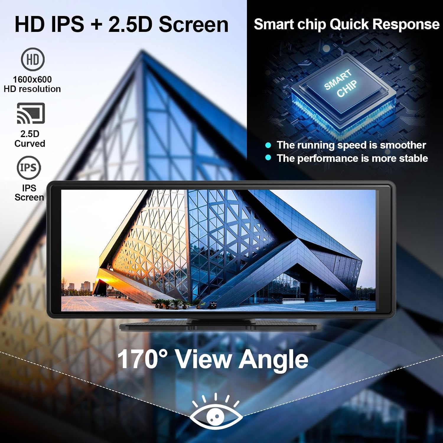Wireless Carplay & Android Auto: 10.26 Inch Wireless Apple carplay is compatible with Apple Car play and Android Auto functions .You can simply get into your car and your Smartphone will automatically connect to the wireless carplay screen; With Carplay display, you can access your smartphone’s apps, maps, music, videos and other features, as well as use Siri or Google Assistant voice to control the carplay box