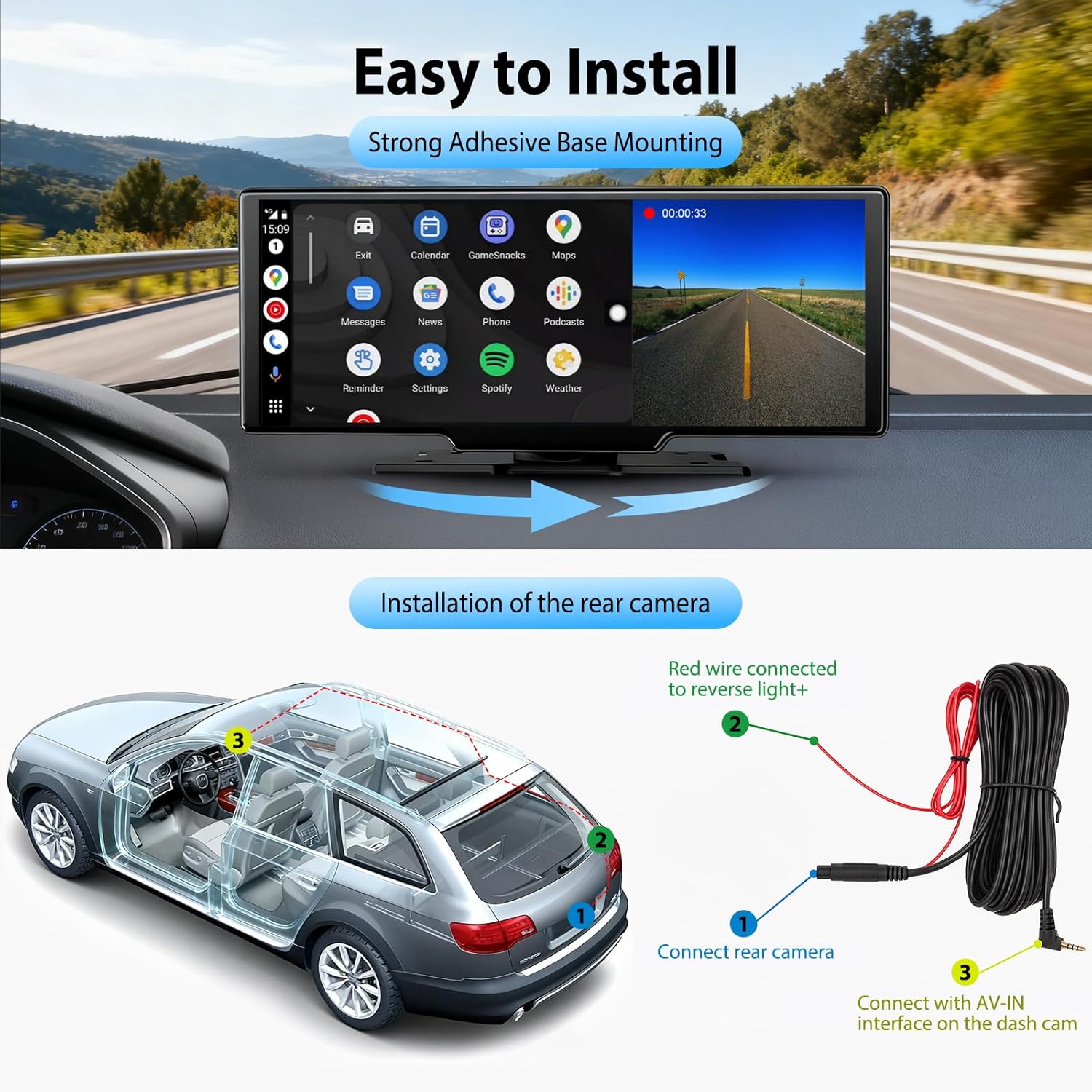 Wide Compatibility & Easy Installation: The car play screen features simple setup with an adhesive base mounting, requiring no dashboard disassembly. It is widely compatible with various vehicle models (12V-32V vehicles), including sedans, SUVs, trucks, RVs, and vans. Plug and play functionality allows for effortless upgrades to your in-car experience