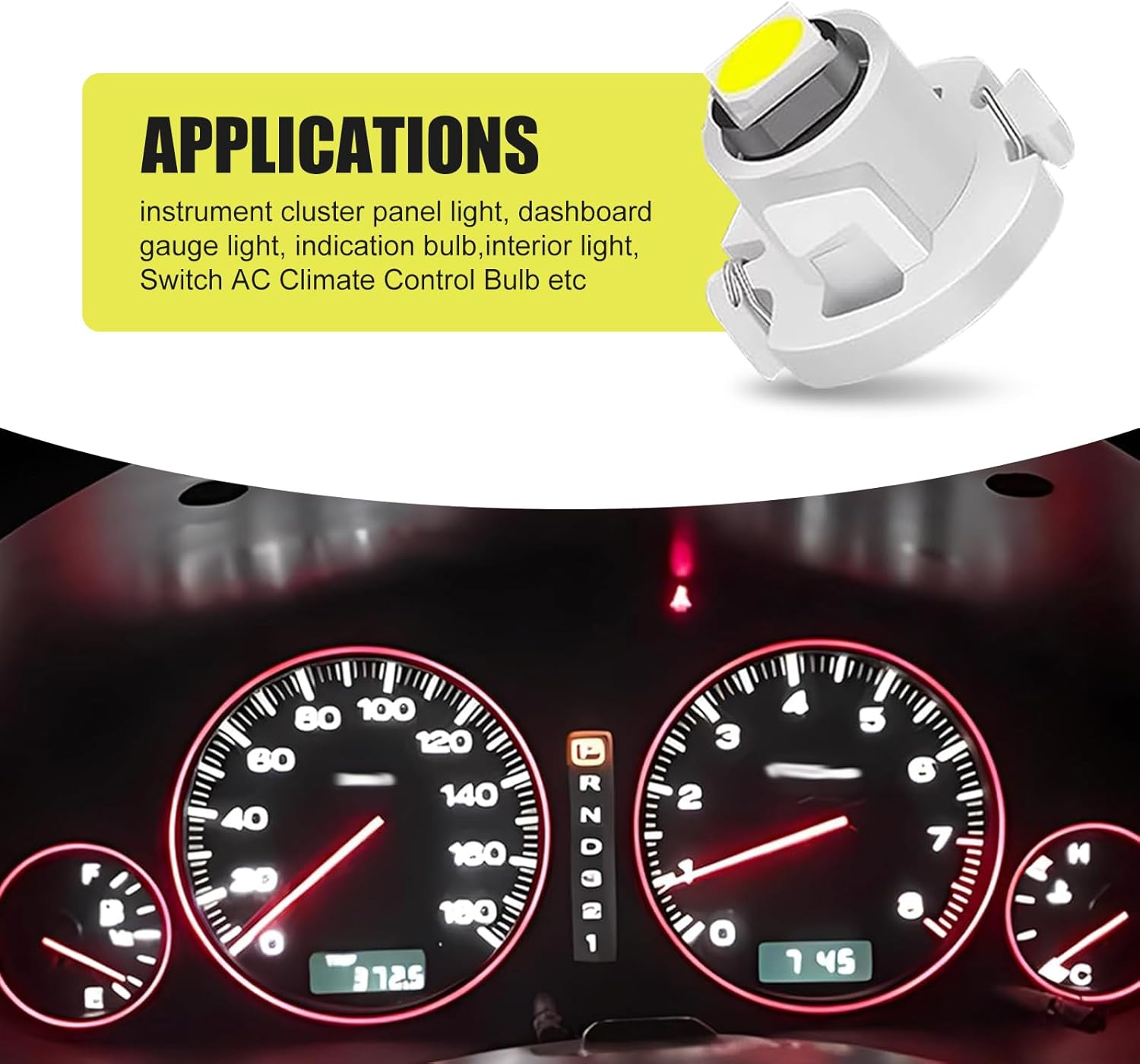 High Brightness: This t4.2 led bulb adopts 3030 LED chip, with a brightness of 150LM, the light is sufficient and even, which can clearly illuminate the dashboard, air conditioning buttons and other areas, and make the operation more convenient at night.