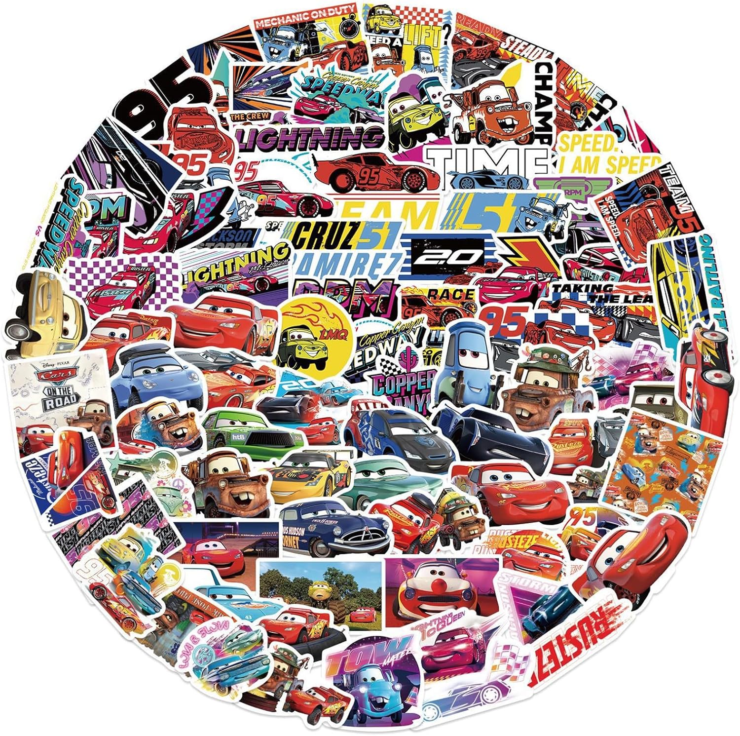 Various Cartoon Characters Car Stickers: There are 100PCS different Cartoon Characters stickers. They are all made of PVC vinyl waterproof stickers, high-definition patterns and bright colors. All decals are in the range of 2-3.5 inches size
