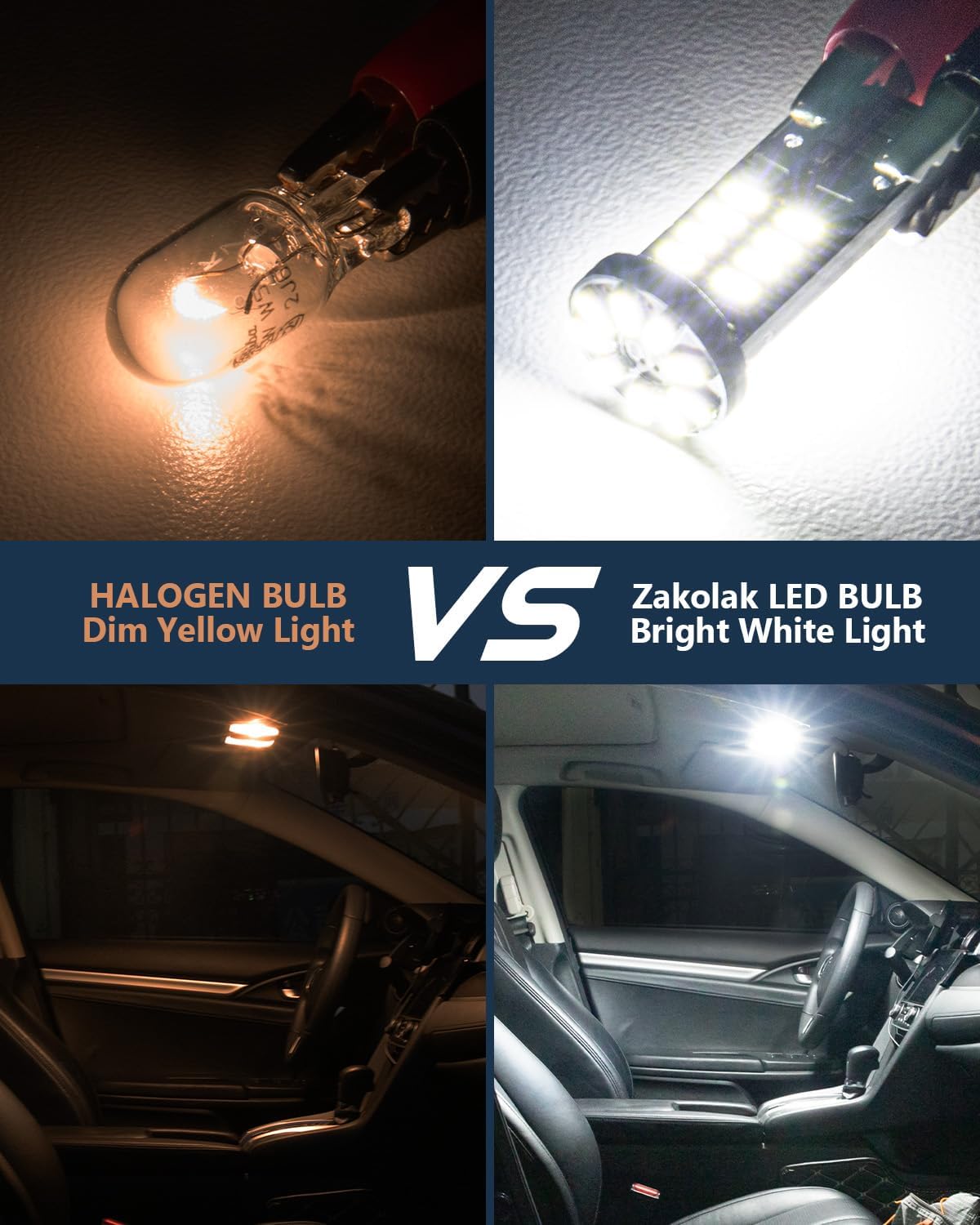 The Zakolak 25-SMD LED bulbs are a massive upgrade over stock halogen bulbs. For such a small size, the light output is impressive—the 6500K Xenon White is crisp, clean, and modern without being “blue.”The Highlights:Instant Refresh: They completely modernized my interior dome and map lights. No more dim, yellow light.Super Bright: The 25-chipset design puts out a ton of light (400LM), making it much easier to see inside the car at night.True Plug-and-Play: They fit perfectly into T10/194 sockets. If they don’t light up at first, just flip them 180 degrees!Great Value: You get 10 bulbs for a great price, which is more than enough to do the interior, license plate, and trunk.Bottom Line: If you want a cheap, easy way to make your car look ten years newer, these are the bulbs to get.