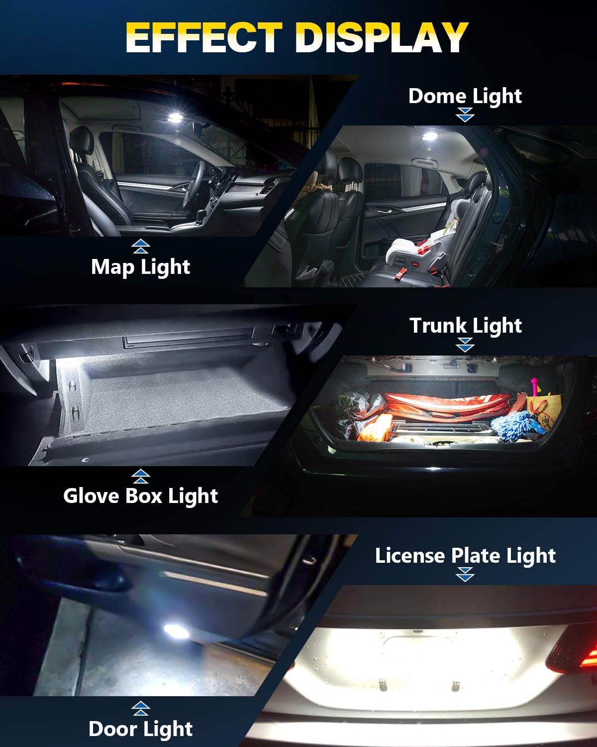 【97% Vehicle Compatibility】: Compatible with multiple LED bulb models including T10, 194, 168, 147, 152, 158, 159, 161, 175, 184, 192, 193, 2825, W5W. Suitable for various vehicle positions such as license plate lights, car interior door lights, RV interior lights, dome lights, parking lights, side marker lights, trunk lights, courtesy lights, map lights, glove box lights, and more, offering a bright upgrade to refresh your car’s appearance.