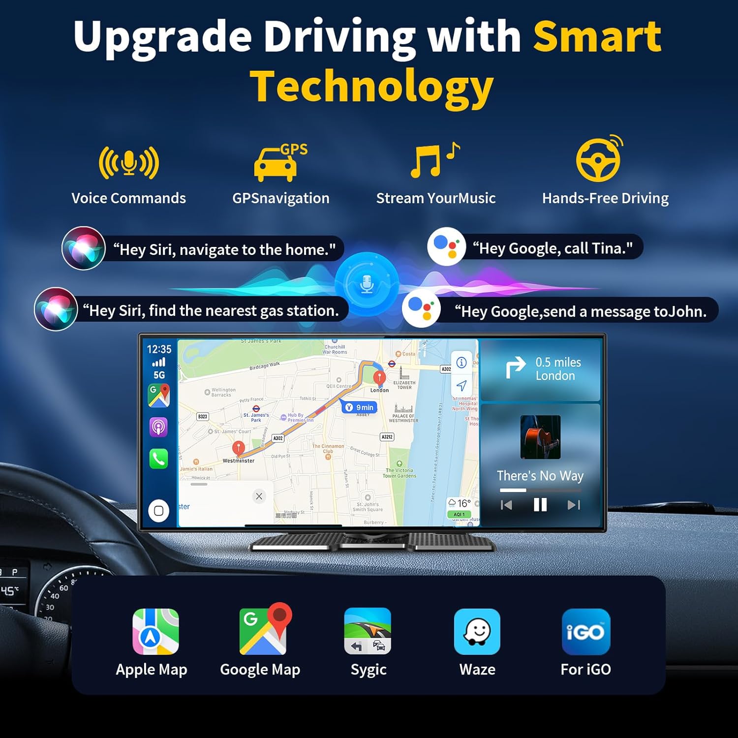 【Voice Control+Real-Time GPS Navigation】The carplay screen in your vehicle can be operated using voice assistants like Siri to control music, GPS navigation, and phone calls, enabling hands-free driving. This gps navigator for car display connects in real time to your smartphone’s maps. Its large screen carplay design magnifies and displays live map data, delivering voice navigation through your car’s speakers. Enjoy your factory audio system while ensuring driving safety.