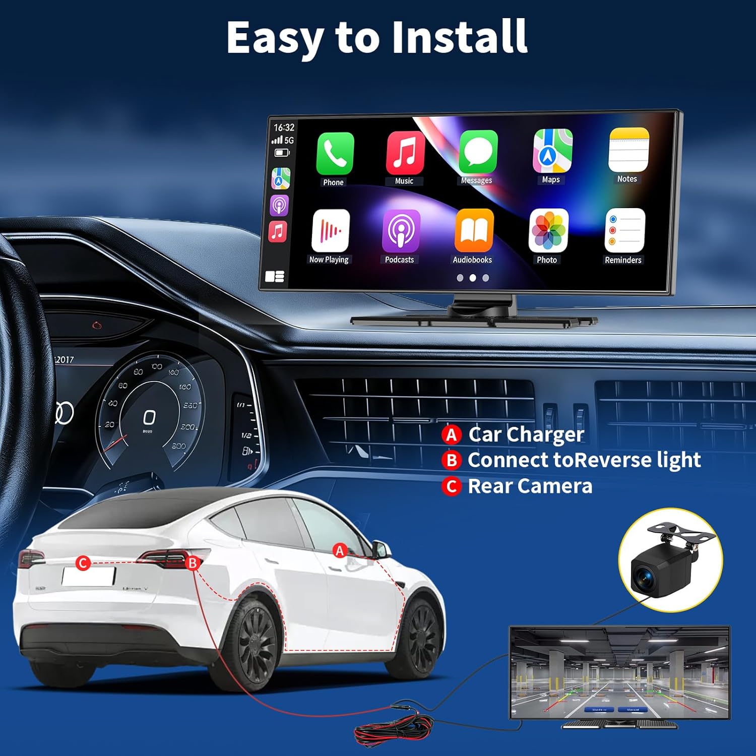 I’ve been using this 9 inch CarPlay screen in my car for a while, and the setup was pretty straightforward. I placed it on my dashboard using the mount that came in the box and powered it through the cigarette lighter. The screen size is easy to see while driving, and the display looks clear for maps and music.It connects to my phone through wireless CarPlay and Bluetooth, and most of the time the connection comes up on its own after I start the car. Navigation, calls, and music show up on the screen without needing to touch my phone much, which makes things simpler while driving.The included backup camera works and gives a wide view behind the car, though the image looks more basic compared to factory systems. There can also be a short delay when switching between apps or reconnecting after the car has been off. For me, it adds useful functions to a car that didn’t have a built-in screen, even though it still feels like an add-on rather than something built into the dashboard.